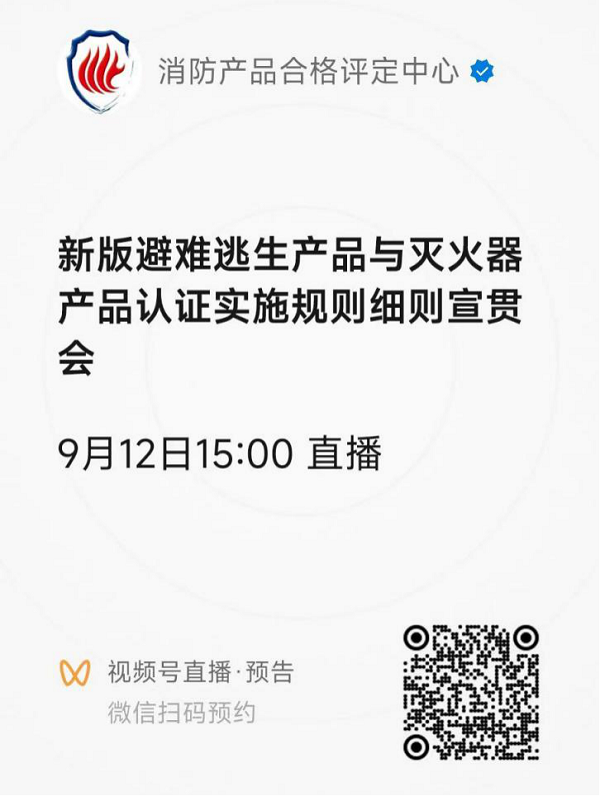 會(huì)議通過(guò)微信視頻號(hào)“消防產(chǎn)品合格評(píng)定中心”直播召開,請(qǐng)各參會(huì)人員提前掃描會(huì)議鏈接二維碼預(yù)約會(huì)議,以便及時(shí)參會(huì)。會(huì)議鏈接: