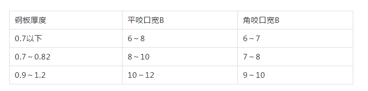 9、風管的咬口形式做如下選擇:矩形風管或配件的四角組合采用聯(lián)合角咬口。咬口寬度和留量根據(jù)板材厚度定,具體尺寸見下表: