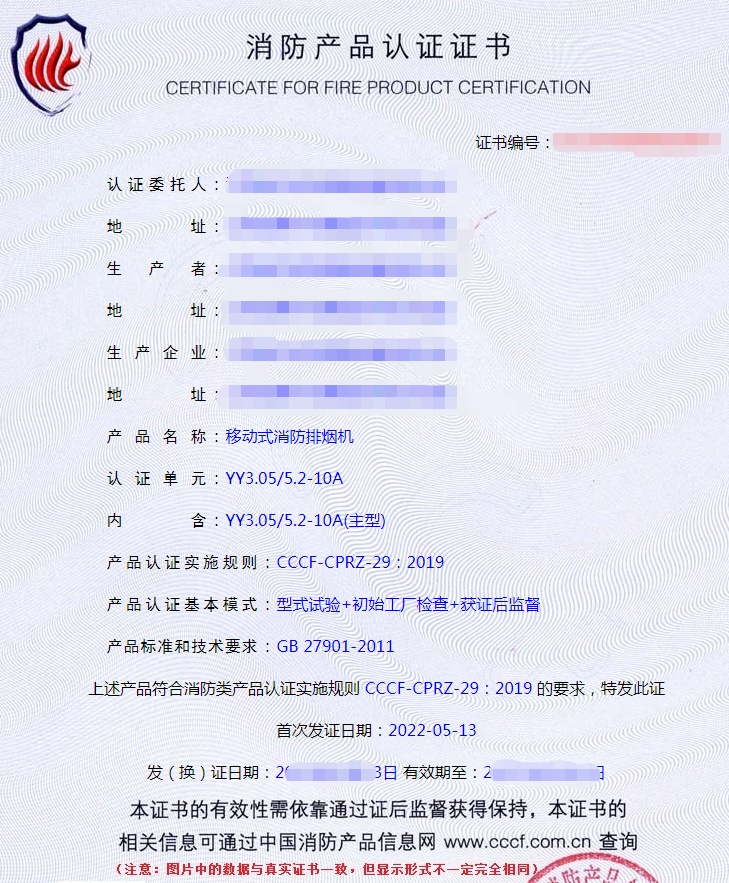 移動(dòng)式消防排煙機(jī)認(rèn)證檢驗(yàn)要求